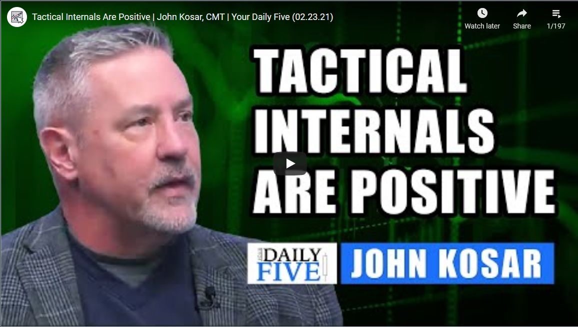 John Kosar shares the 5 most influential charts, data series, and models he is focusing on this week. The Asbury 6 has been positive since February 2, 2021. When all 6 are positive, market internals are the most conducive to adding risk to portfolios.