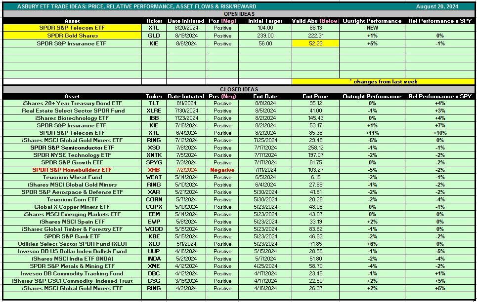 Table 1 below is also accessible via the Asbury ETF Trade Ideas rectangle at the top of the Research Center.