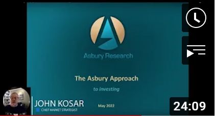 The Asbury Approach To Investing is a free monthly video that we use to keep in contact with those who have previously asked for information about Asbury Research.  It is a collection of charts, data, and our own quantitative models that have recently appeared in our premium reports that go to our paid subscribers.