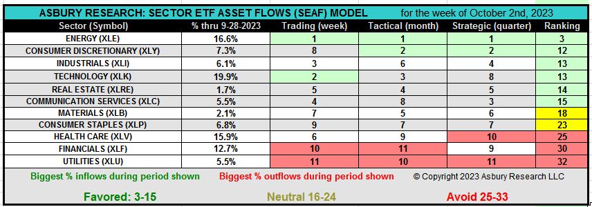 The SEAF (Sector ETF Asset Flows) Model: 3rd Quarter 2023 Performance Update