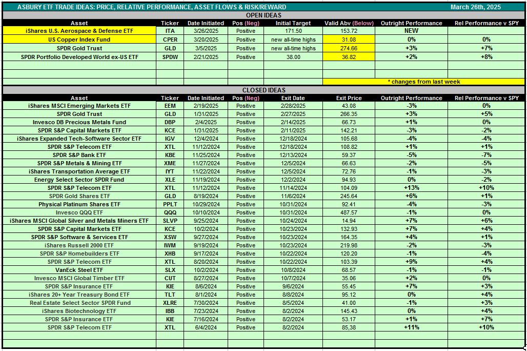 Table 1 below is also accessible via the Asbury ETF Trade Ideas rectangle at the top of the Research Center.