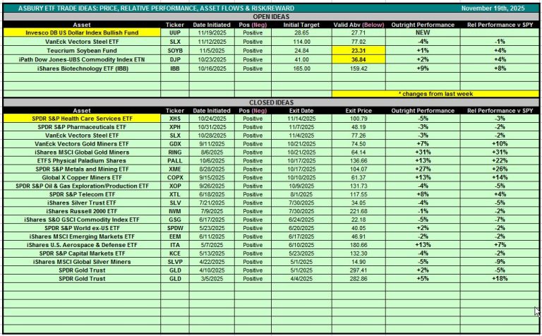 Table 1 below is also accessible via the Asbury ETF Trade Ideas rectangle at the top of the Research Center.
