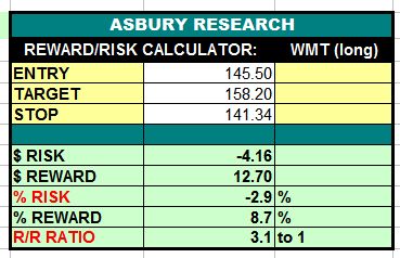 Table 1 below shows that considering the aforementioned upside target and a protective stop placed below the $141.34 area, a long entry price of $145.50 would provide a 1:3.1 risk/reward ratio (risking $1.00 to make $3.10) with an initial risk of 2.9%.