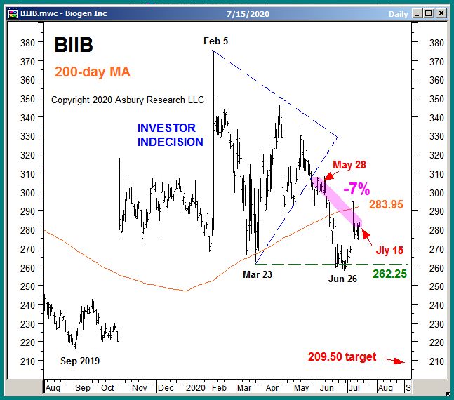 Biogen Inc. (BIIB) recently broke down from more than 3 months of sideways investor indecision, targeting an additional 31% decline to $209.50 per share that will remain valid below the $316.85 area.  This is an Asbury Momentum idea.