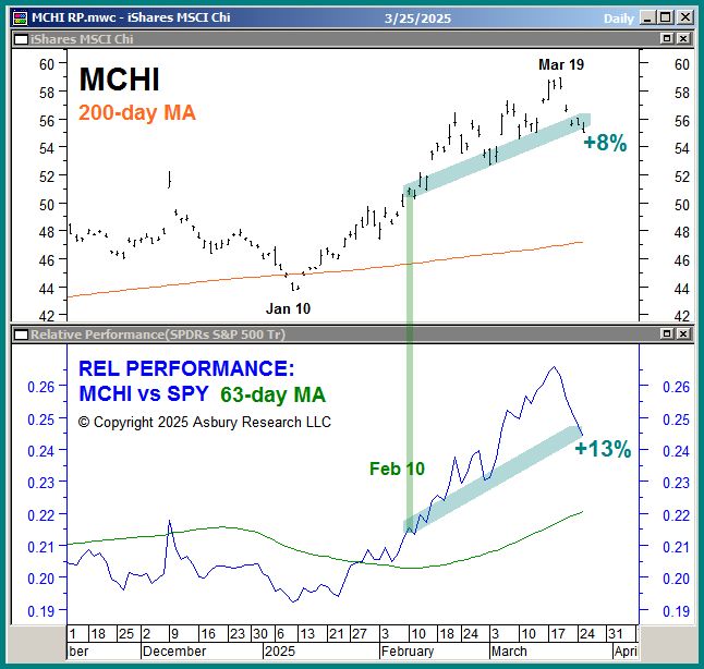 We exited our Feb 10th long/overweight idea in the iShares MSCI China ETF (MCHI) , as indicated in our US vs The World Model, on the close yesterday, Mar 25th, for a 7.6% outright gain while outperforming the S&P 500 (SPY) by 13.4%.